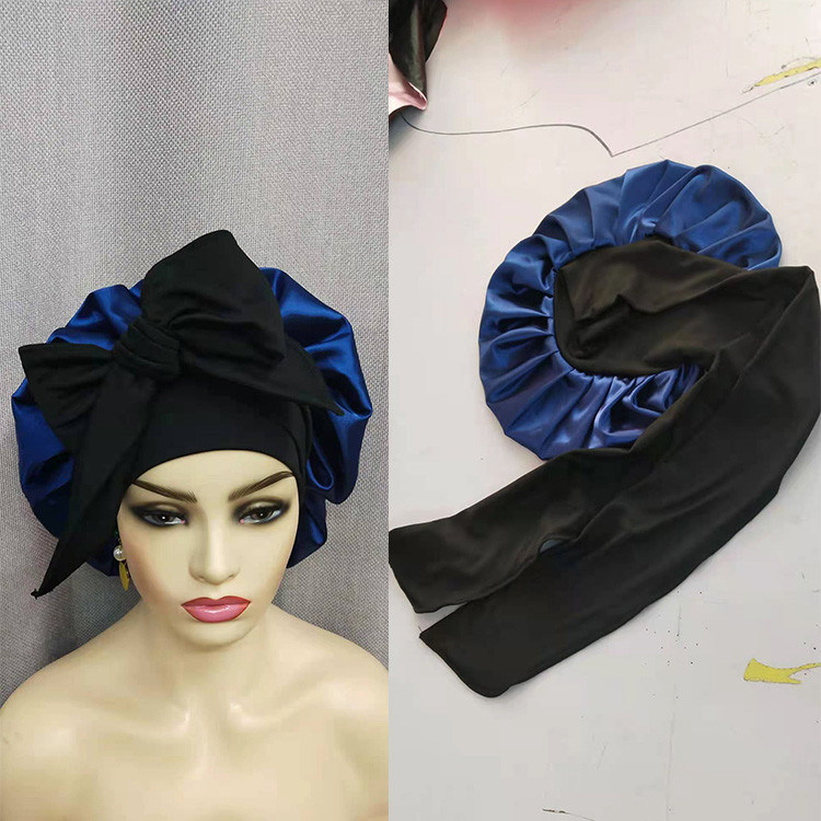 บิ๊กโบว์พับผมนอนหมวก 27 นิ้วซาติน Lined Sleep Cap