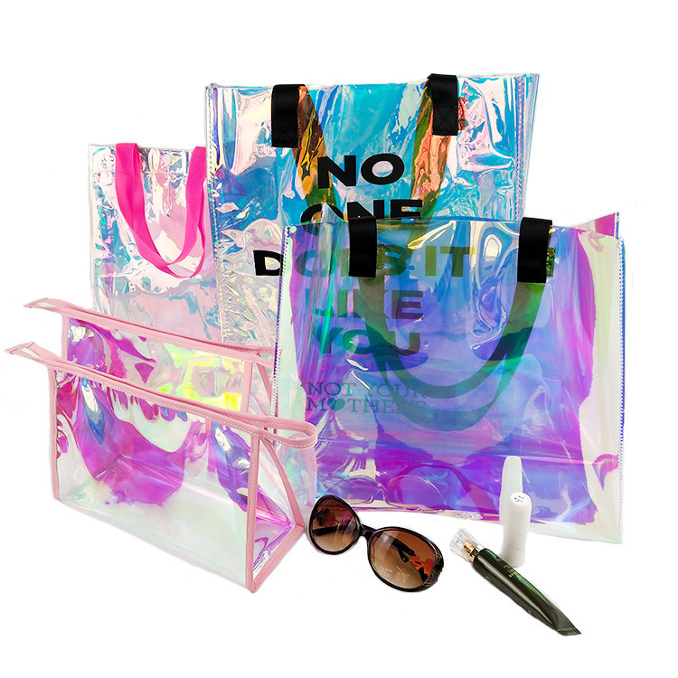 กระเป๋าถือสตรีเลเซอร์โฮโลแกรมโฮโลแกรมวัสดุพีวีซีสีใสกระเป๋าใส