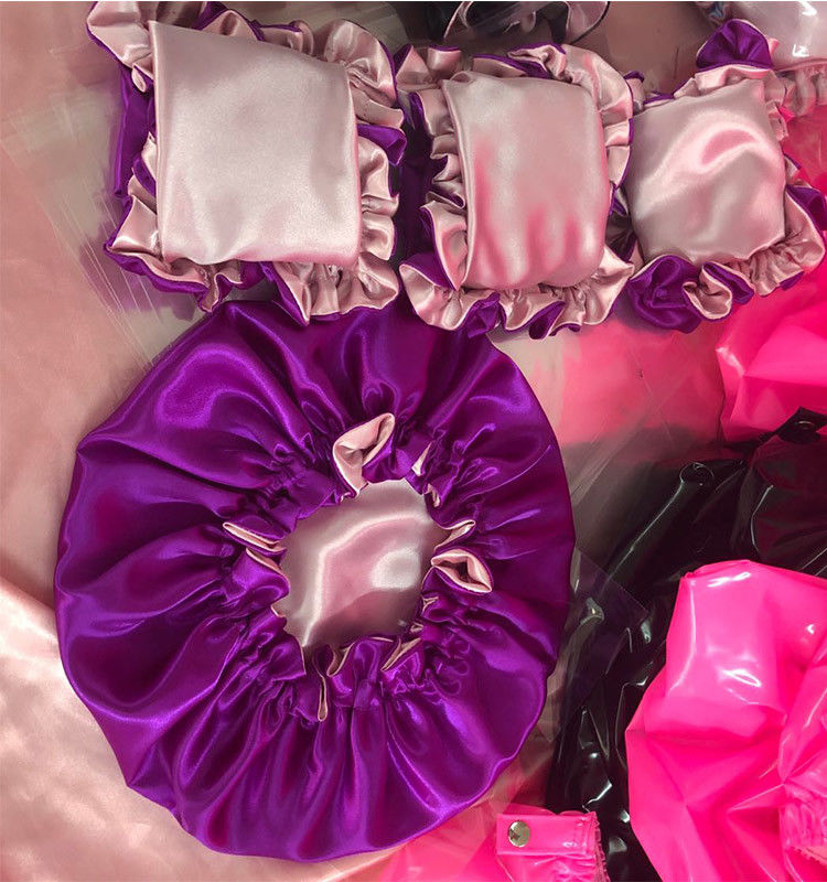 บิ๊กโบว์พับผมนอนหมวก 27 นิ้วซาติน Lined Sleep Cap